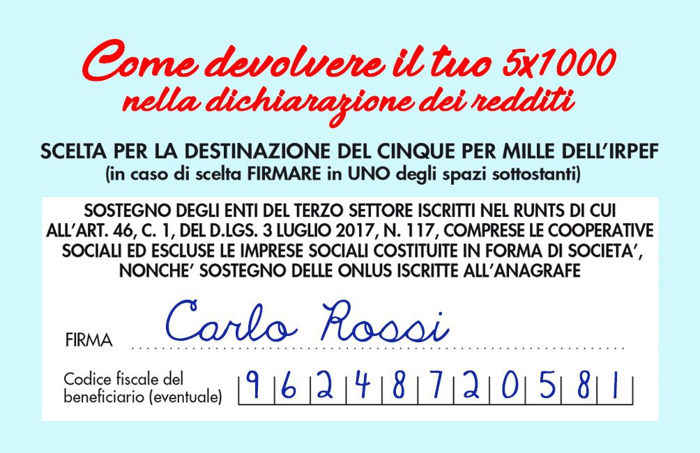 RICORDA, LE SCELTE DELLA DESTINAZIONE DELL’2X1000, 5X1000 e 8X1000 DELL’IRPEF NON SONO IN ALCUN MODO ALTERNATIVE TRA LORO E POSSONO ESSERE ESPRESSE TUTTE E TRE.